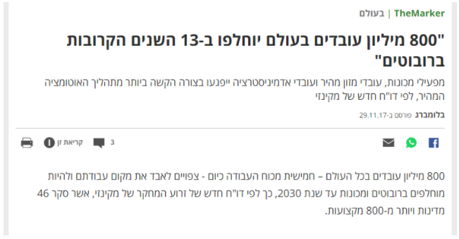 כלכלנים, חזאים ואנליטיקאים אומרים כבר שנים, שהמהפכה הטכנולוגית הולכת להשתלט יותר ויותר על כח העבודה שלנו, ומי שלא יתרגם את העשייה שלו למקצוע טכנולוגי לא ישרוד.